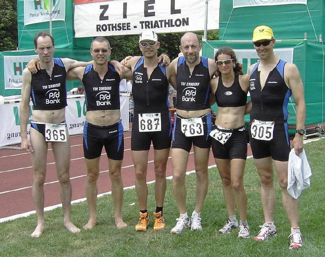 Die Teilnehmer des Rothsee Triathlons: Michael Neumann, Horst Gottwald, Thilo Hergenröther, Andreas Mayr, Katja Gehrung und Stefan Pistorius.(von links)