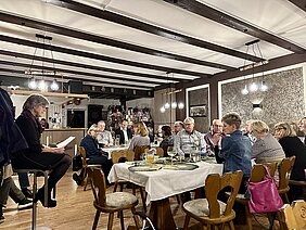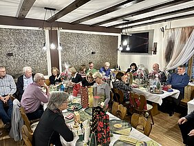 Nach einem kurzen Rück- und Ausblick des Abteilungsleiters auf unsere Sportlerjahre 2025 und 2026, der Ehrung der Übungsleiterinnen und einem fulminaten Abendessen untermalte das Musikerduo Leipold die lebhaften Gespräche, unterbrochen durch kurze - teilweise nachdenkliche - Texte und Geschichten. Höhepunkt des Abends war wieder die alljährliche Tombola, die mit zahlreichen hochwertigen Preise das Interesse aller Telnehmer entfachte. Nach der Verteilung türmten sich auf den Tischen die Gewinne und in allen Gesichtern war eine stolze Zufriedenheit zu erkennen. Glückseelig verließen die Teilnehmer das Vereinsheim - wieder einmal eine prächtige Veranstaltung.