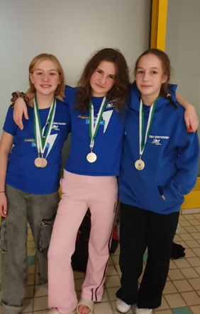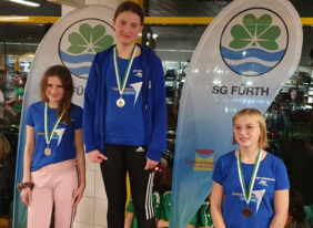 Zu unseren erfahrenen Teilnehmern zählten Charlotte Hoffmann, Verena Matz, Lorena Rossa und Emilia Stoppe (alle Jahrgang 2012), Emily Heinzelmann und Allegra Lennartz (beide Jahrgang 2013), Felix Krenzer und Leon Langer (beide Jahrgang 2015) sowie Philipp Siegert (Jahrgang 2016). Es fielen viele neue Bestzeiten und einiges an Edelmetall wanderte in die Schwimmrucksäcke. Im Wettbewerb über 100 Meter Lagen belegte unser Trio, bestehend aus Charlotte Hoffmann (Goldmedaille), Verena Matz (Silbermedaille) und Lorena Rossa (Bronzemedaille), die ersten drei Plätze und repräsentierte ein komplettes Podium in den TSV Zirndorf Farben.