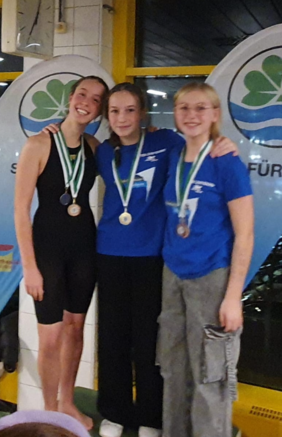 Im Anschluss hatten eine Reihe von Schwimmerinnen und Schwimmern vom TSV Wettkampfpremiere auf der größeren Schwimmbadbühne. Zu diesen gehörten Nele Erdorf und Marlene Lange (beide Jahrgang 2015), Franziska Faber (2014), Lia Großmann und Alexandra Henn (beide 2012) sowie Henri Malinowski (2013) als männlicher Vertreter. Alle Athleten vertraten die Farben des TSV Zirndorf mit großem Engagement und leisteten einen wesentlichen Beitrag zu dem sehr guten Mannschaftsergebnis. Besonders aus dem Team hervorzuheben sind diesmal Nele Erdorf und Henri Malinowski, die bei jeweils fünf Starts vier Medaillen gewannen. Aber auch Lia Großmann schwamm sich sehr gut in den Wettkampf und erreichte zweimal das Siegerpodest.